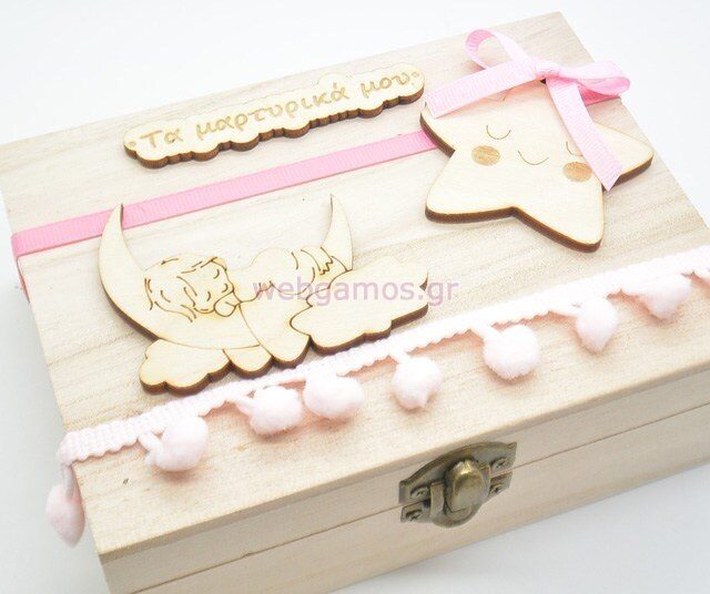Ξύλινο Κουτί μαρτυρικών με θέμα αστεράκι. Διαστάσεις εξωτερικές κουτιού Υ:8 x Π:20 x Μ:16 εκ. Μπορούν να αλλάξουν οι κορδέλες σε ότι χρώμα θέλετε. Τιμή: 14,50 € webgamos, Διεύθυ...