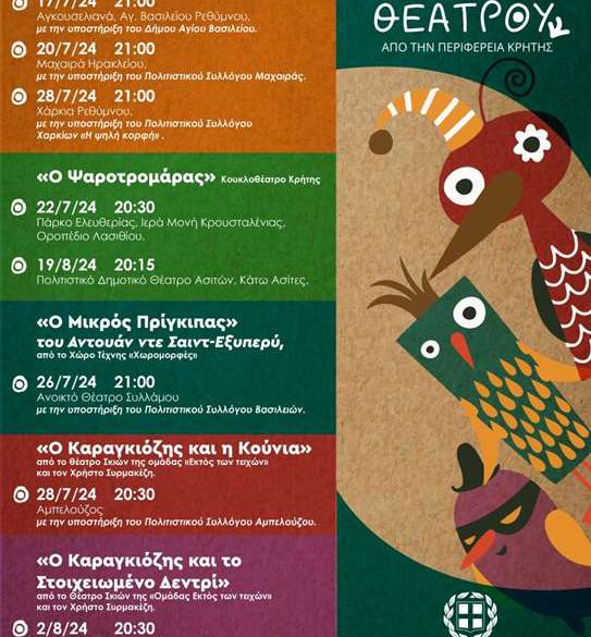 Συνεχίζονται οι «Ημέρες Παιδικού Θεάτρου» από την Περιφέρεια Κρήτης, με σειρά θεατρικών παραστάσεων, με δωρεάν είσοδο για μικρούς και μεγάλους. Μαθήτριες και μαθη...