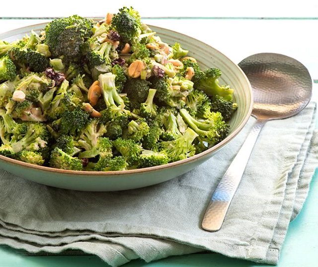 Υλικά 2 μέτρια κεφάλια μπρόκολο, κομμένα σε μέγεθος μπουκιάς 1/4 μέτριο κρεμμύδι, σε κύβους 1/2 φλ. τσαγιού καβουρδισμένους ηλιόσπορους 1/2 φλ. τσαγιού αποξηραμένα κρά...
