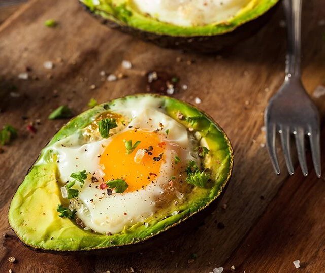 Υλικά 3 αβοκάντο, κομμένα στη μέση και χωρίς το κουκούτσι 6 μεγάλα αβγά Αλάτι και φρεσκοτριμμένο μαύρο πιπέρι, κατά βούληση 2 κ. σ. ψιλοκομμένο φρέσκο σχοινόπρασο Εκ...