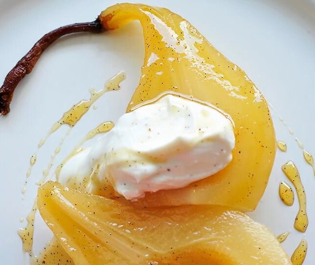 Υλικά 150 γρ. ζάχαρη άχνη 250 ml λευκό κρασί 1/2 κλωνάρι βανίλιας 2 αχλάδια, αποφλοιωμένα, με τα κοτσάνια τους 50 γρ. σάλτσα καραμέλας 50 ml κρέμα γάλακτος, για το σερβίρισμα ...