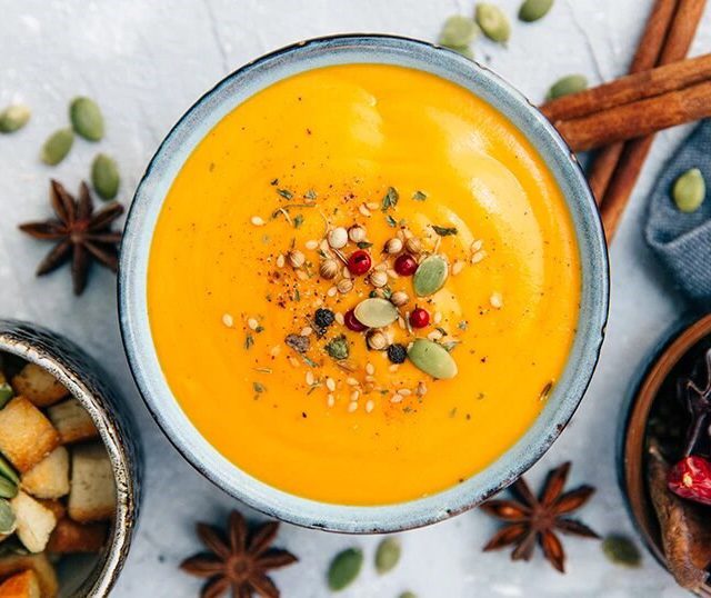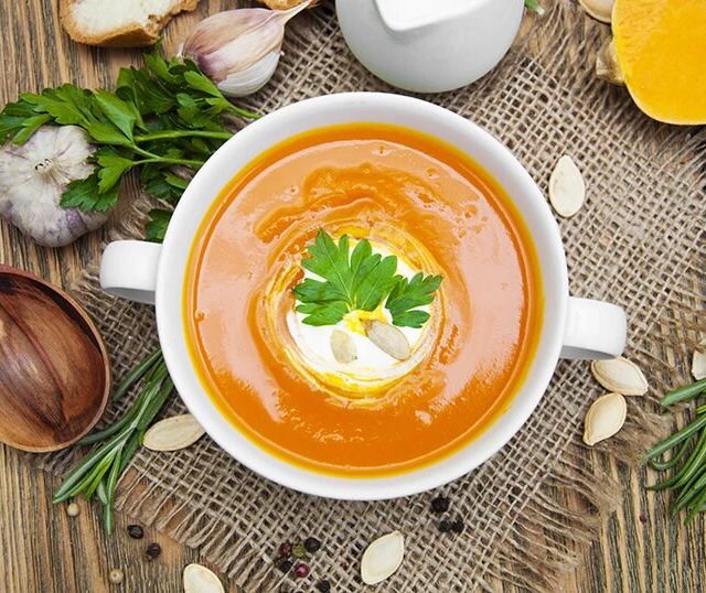 Υλικά 1 κιλό κολοκύθα, ξεφλουδισμένη, χωρίς σπόρους και κομμένη σε κομμάτια 2 κρεμμύδια, ψιλοκομμένα 700 ml ζωμό λαχανικών ή κοτόπουλου 150 ml κρέμα γάλακτος 2 κ. σ. ελαιό...