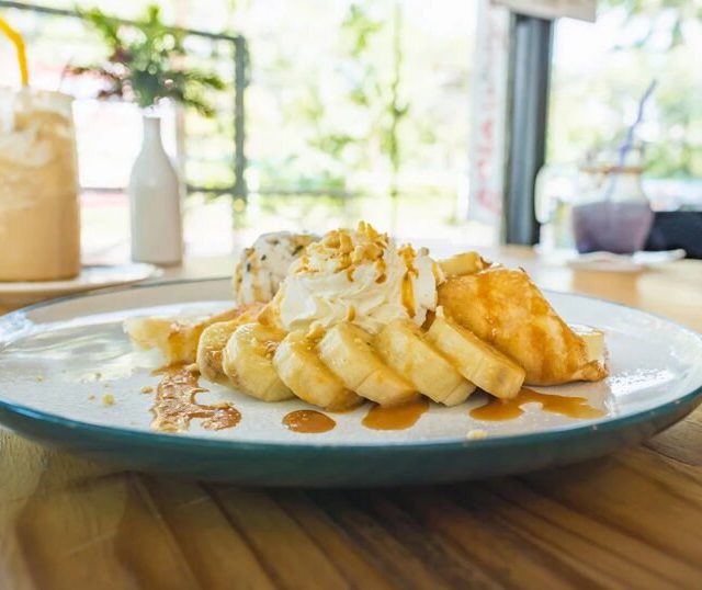 Υλικά 1/2 φλ. τσαγιού βούτυρο 1 φλ. τσαγιού ζάχαρη 1 1/4 φλ. τσαγιού κρέμα γάλακτος 4 μπανάνες, κομμένες σε ροδέλες Εκτέλεση Βήμα 1 Λιώστε το βούτυρο σε ένα μεγάλο τηγάνι...