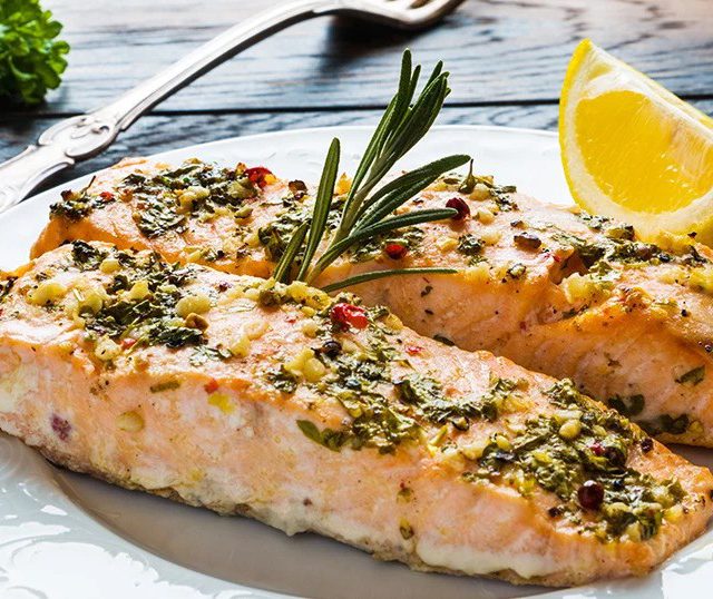 Υλικά 900 γρ. σολομό (με ή χωρίς πέτσα) 4 κ. σ. βούτυρο 4 σκελίδες σκόρδο, ψιλοκομμένες Ξύσμα και χυμό από 1 λεμόνι 2 κ. γλ. φρέσκο άνηθο, ψιλοκομμένο και επιπλέον για το γ...