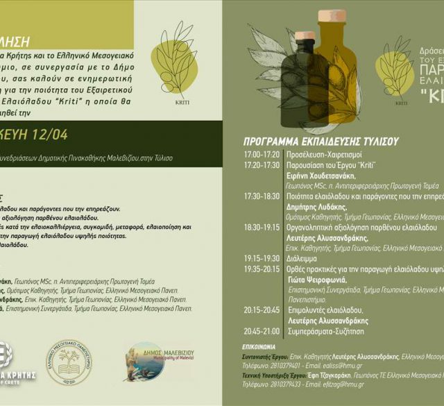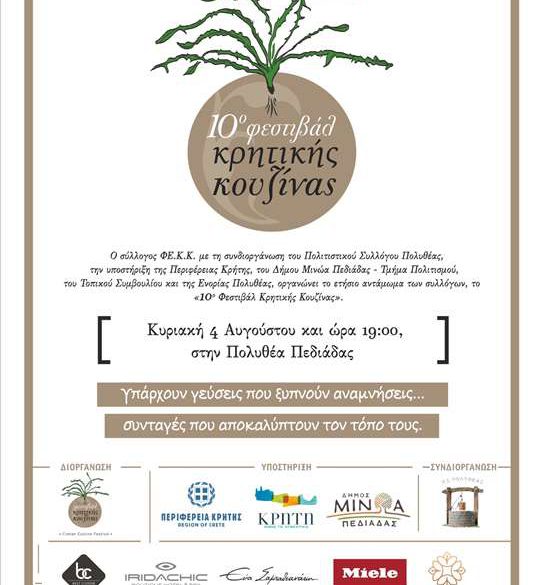 10ο Φεστιβάλ Κρητικής Κουζίνας με την στήριξη της Περιφέρειας Κρήτης την Κυριακή 4 Αυγούστου, στις 7 το απόγευμα, στην Πολυθέα Πεδιάδας