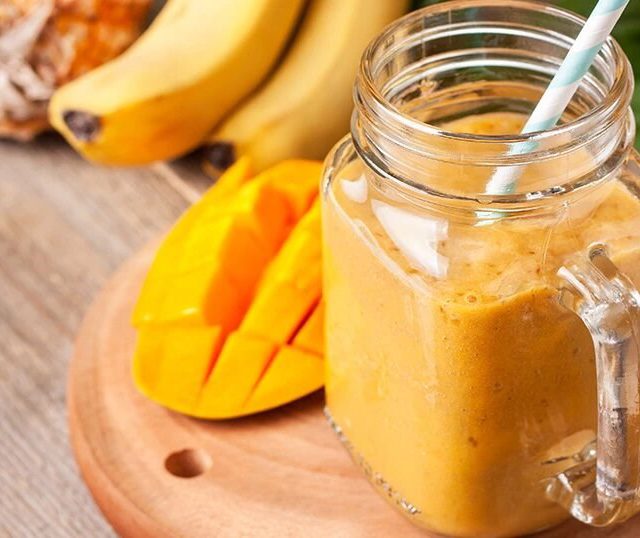 Υλικά 24 μανταρίνια 2 μικρά, πολύ ώριμα και ζουμερά μάνγκο 2 ώριμες μπανάνες 500 γρ. γιαούρτι Μια χούφτα παγάκια (προαιρετικά) Εκτέλεση Βήμα 1 Στύψτε το χυμό από τα μαν...