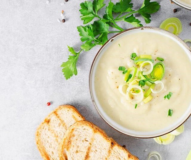 Υλικά 450 γρ. πατάτες, καθαρισμένες και κομμένες σε κομμάτια 1 μικρό κρεμμύδι, κομμένο στο ίδιο μέγεθος με τις πατάτες 450 γρ. λευκά μέρη πράσου, κομμένα σε φέτες (κρατ...