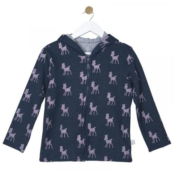 Παιδική μακρυμάνικη ζακέτα με κουκούλα και μοτίβο Ελαφάκια με ασημόσκονη. Κλείσιμο με φερμουάρ στο μπροστινό μέρος. Ιδιαίτερη, απαλή ποιότητα. Σύνθεση: 60% Oeko-Tex Βα...