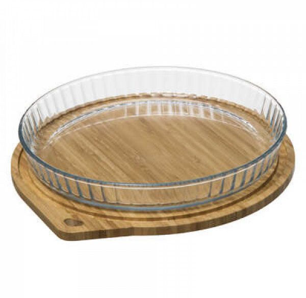 Κατασκευασμένη από πυρίμαχο γυαλί ανθεκτικό στη θερμότητα έως 240 βαθμούς κελσίου. Με βάση από bamboo που μπορεί να χρησιμοποιηθεί σαν καπάκι για να σκεπάσετε το σκεύ...