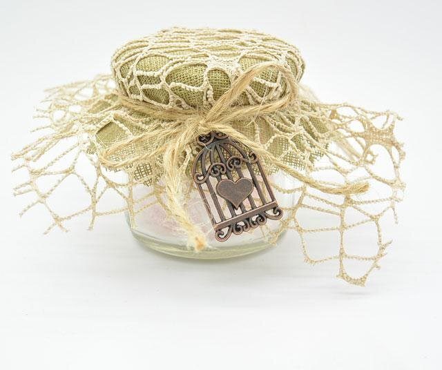 Βαζάκι με λουκουμάκια για κέρασμα σε γάμο σε vintage ύφος, χωρητικότητας 106 ml. Η τιμή αφορά το βαζάκι στολισμένο. Περιέχει 5 – 6 λουκουμάκια. Τα χρώματα μπορούν να γίνουν...