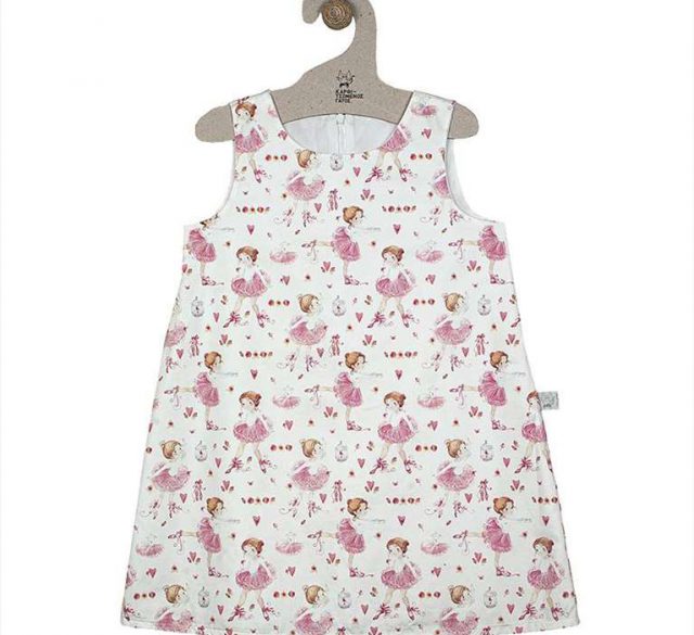 Χειροποίητο βαμβακερό φόρεμα με μοτίβο Μπαλαρίνες, σε άλφα γραμμή. Εσωτερικά είναι επενδεδυμένο με βαμβακερή φόδρα. Κλείνει στο πίσω μέρος με φερμουάρ. Σύνθεση: 1...