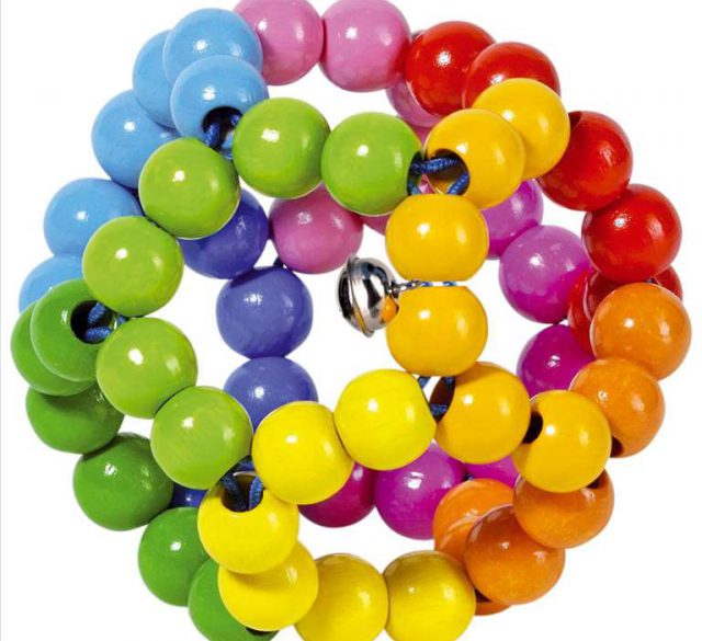 Χειροποίητη μπάλα με χρωματιστές χάντρες από ξύλο. Αυτή η μπαλίτσα είναι ένα βρεφικό παιχνίδι πιασίματος που είναι ασφαλές και δεν χαλάει όταν το μασουλάνε και τ...