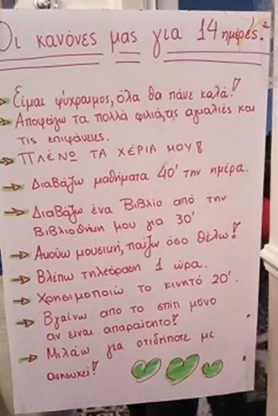 Η Μαρία, μαμά ενός 9χρονου μαθητή της Γ’ Δημοτικού, προνόησε και από χθες το απόγευμα τοιχοκόλλησε στο σπίτι της τους εξής 10 κανόνες: